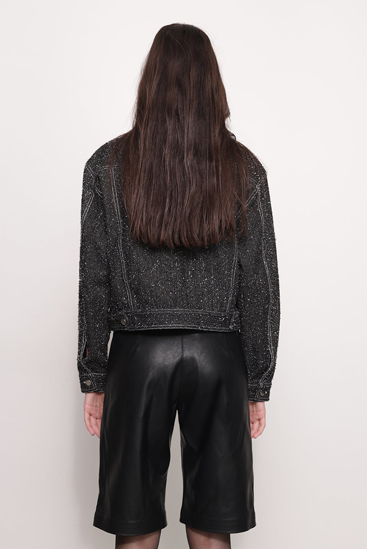 Casual boucle denim with vegan leather jacket by Sabina Musayev.