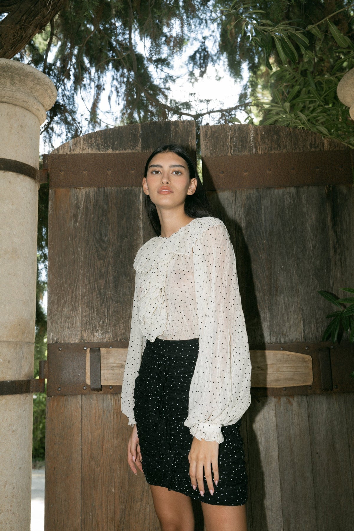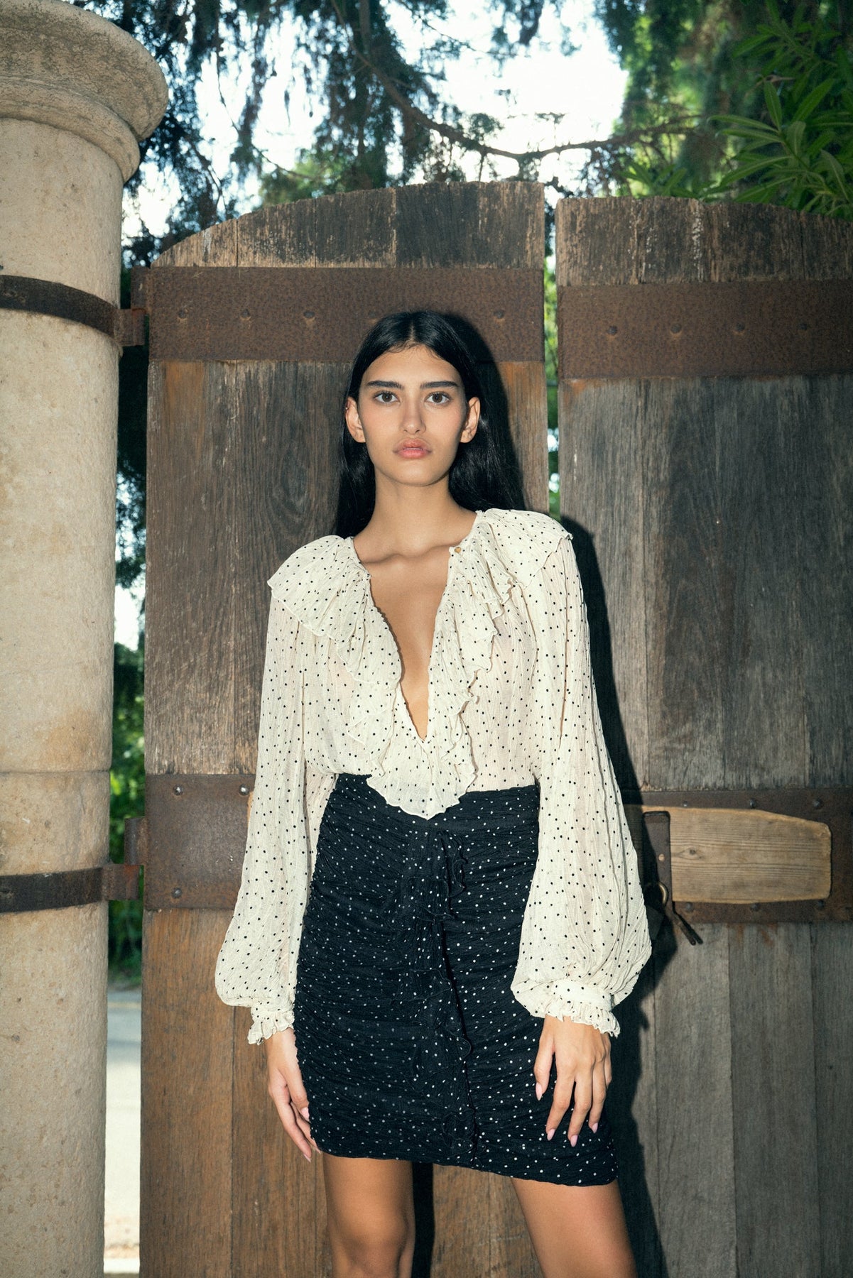 SABINA MUSAYEV - pleated_chiffon_w_dots_black_fw_22_23